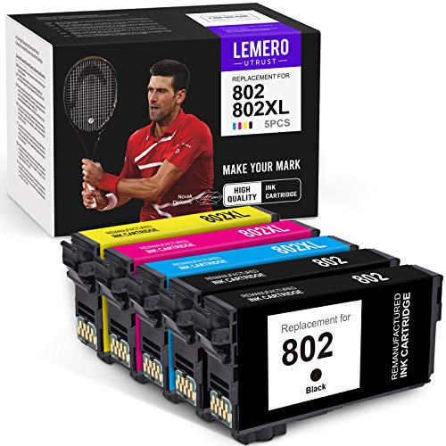 sears LemeroUtrust Remanufactured Ink Cartridges Replacement for Epson 802 802XL T802XL use with Epson Workforce Pro WF-4734 WF-4730 WF-4720 EC-4020 EC-4040 (2 Black, 1 Cyan, 1 Magenta, 1 Yellow, 5-Pack)